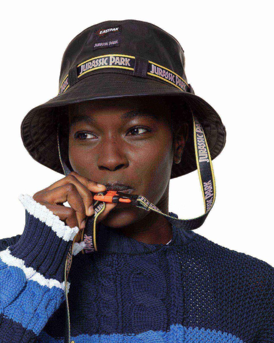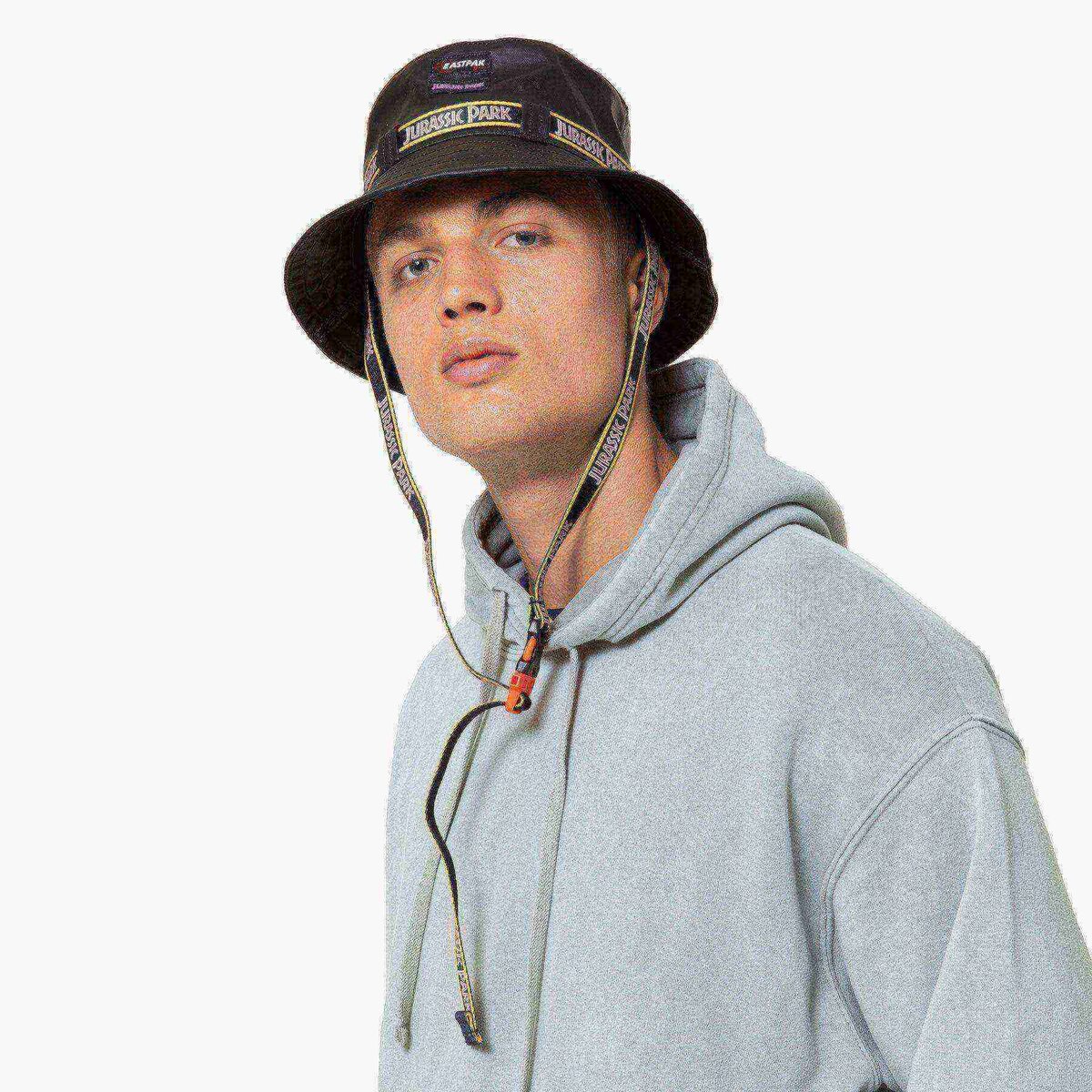 The bucket hat from our official collaboration with Jurassic Park. This exclusive design commemorates the iconic sci-fi series with co-branded Jurassic Park and Eastpak logos. Use the adjustable strap to keep the hat in place while you’re out exploring.