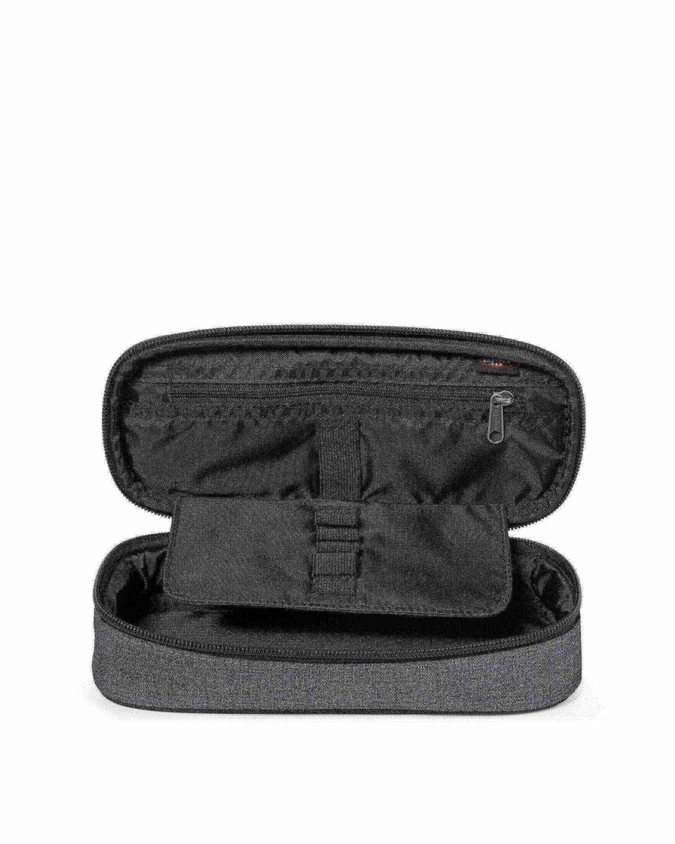 Il nostro astuccio compatto nella tonalità Black Denim con un organizer interno per penne