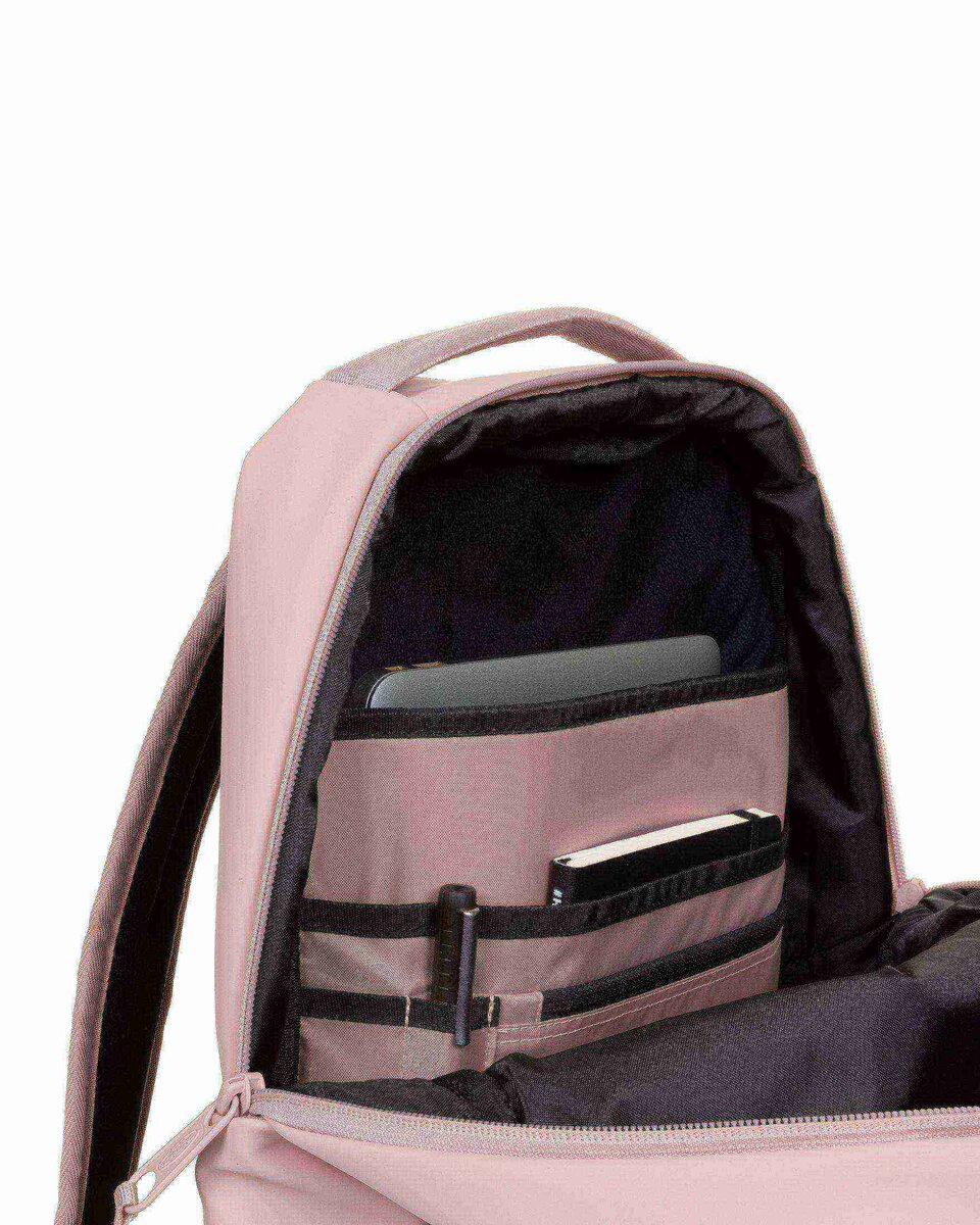 La collezione premium CNNCT per il professionista urbano è progettata per spostamenti quotidiani agevoli e per viaggiare senza problemi. Il nostro elegante zaino da città è dotato di una custodia per laptop integrata e di una cinghia che consente di fissarlo alla valigia.