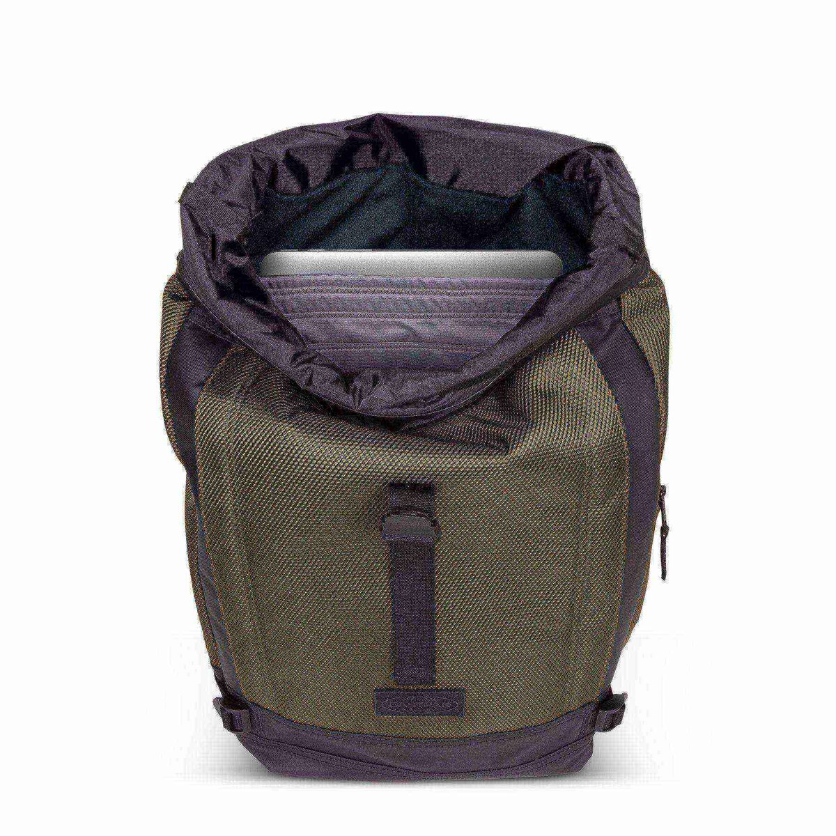 • Main compartment with a roll-top opening and zip-fastening side opening
