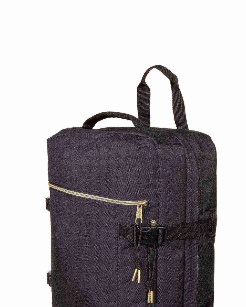 Unser 2-in-1-Reisegepäck zeichnet sich durch kontrastierende goldfarbene Besätze aus. Dieses vielseitige Handgepäck kann als Rucksack oder als Duffel-Tasche getragen werden. Das integrierte Laptopfach schützt deine technischen Geräte, wenn du unterwegs bist.