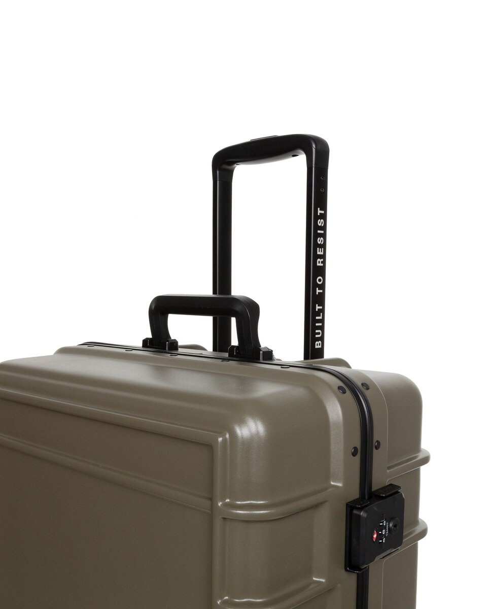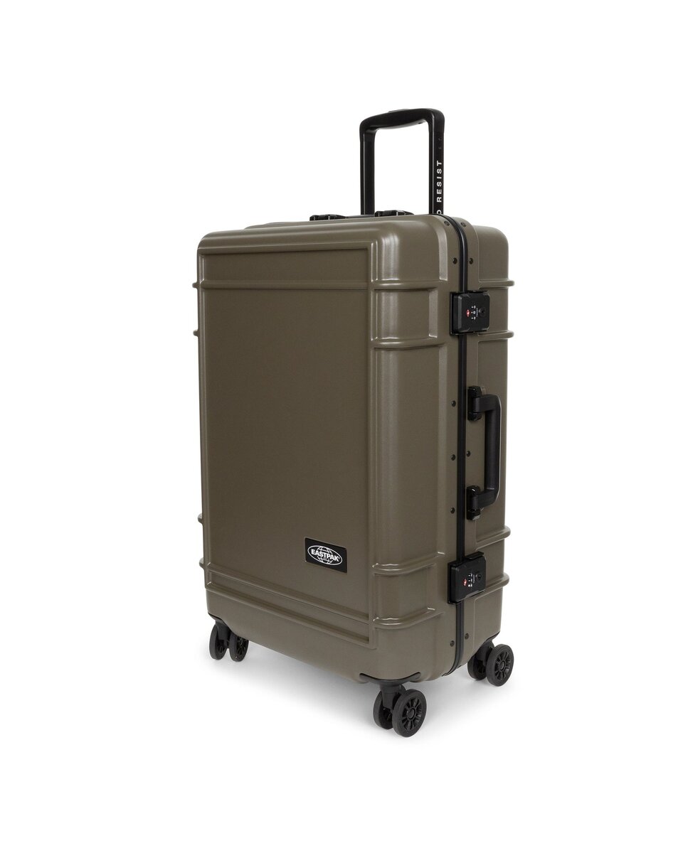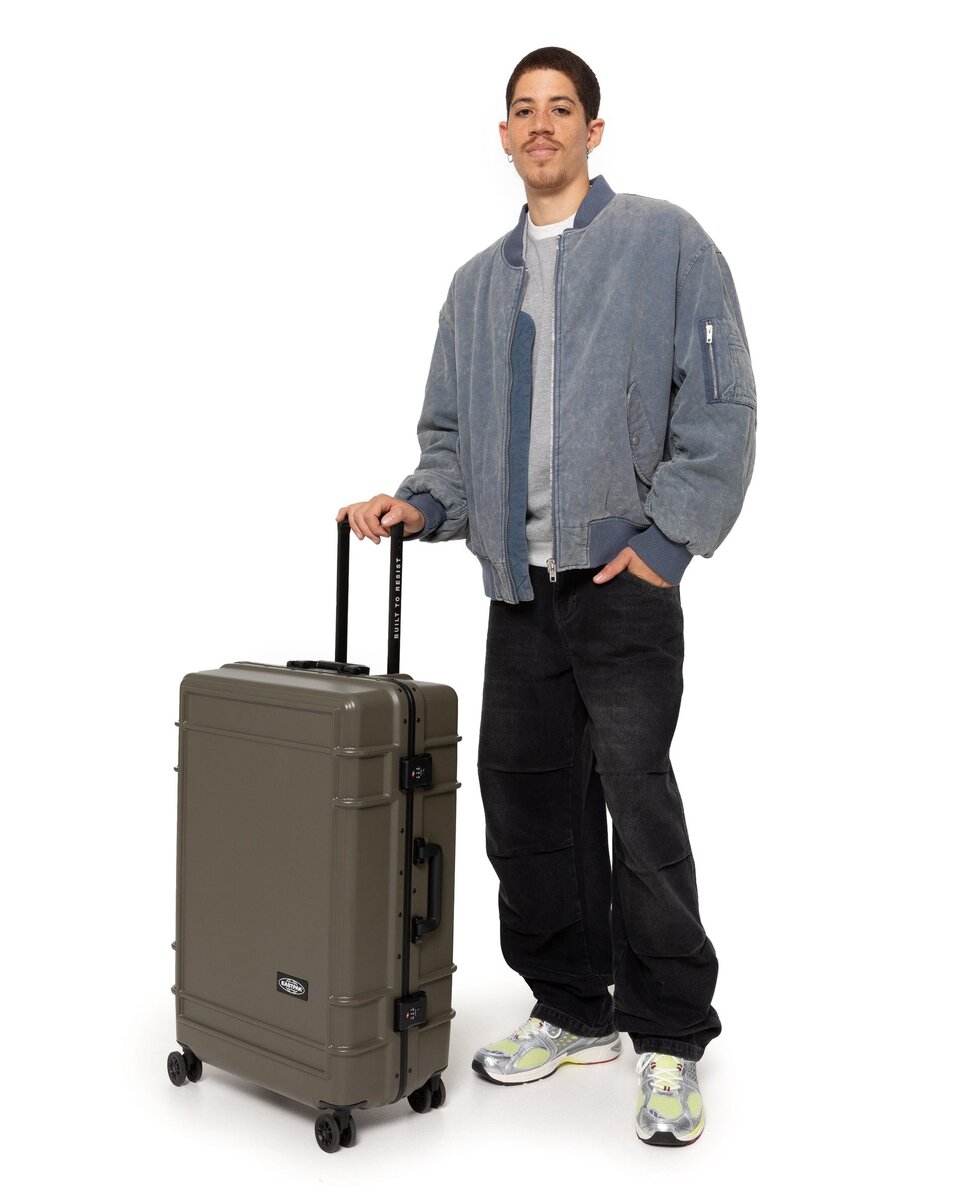 Take flight with our large hardshell suitcase. Built to Resist whatever your journey throws your way, this luggage combines durable polycarbonate with a lightweight aluminium frame. Protective bumpers and an integrated lock secure your belongings in this water-resistant case. Add a touch of effortless luxury to your travels with Japanese wheels and premium Eastpak branded details.