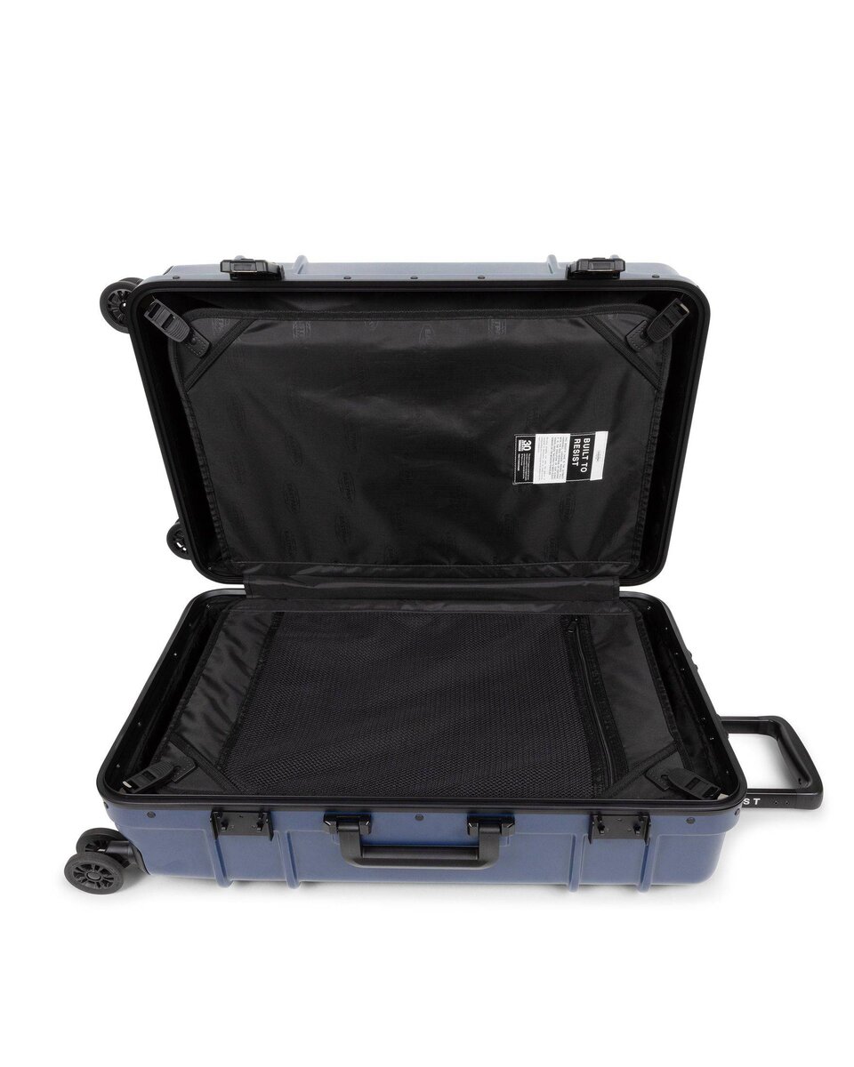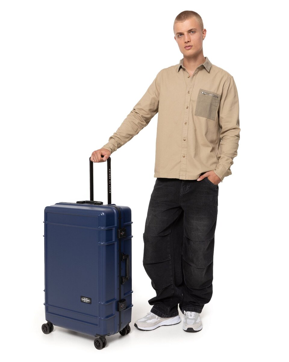 Take flight with our large hardshell suitcase. Built to Resist whatever your journey throws your way, this luggage combines durable polycarbonate with a lightweight aluminium frame. Protective bumpers and an integrated lock secure your belongings in this water-resistant case. Add a touch of effortless luxury to your travels with Japanese wheels and premium Eastpak branded details.