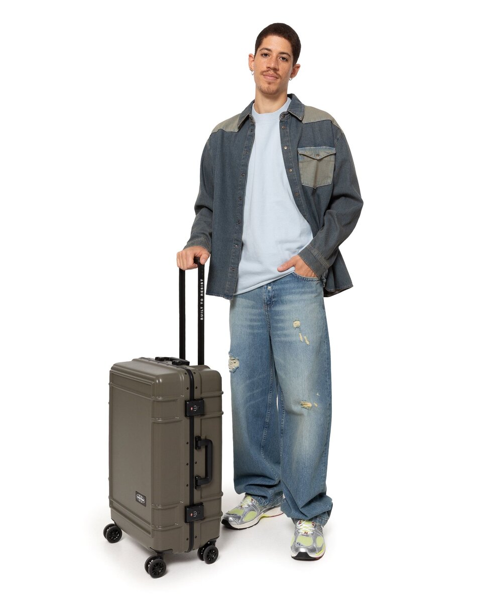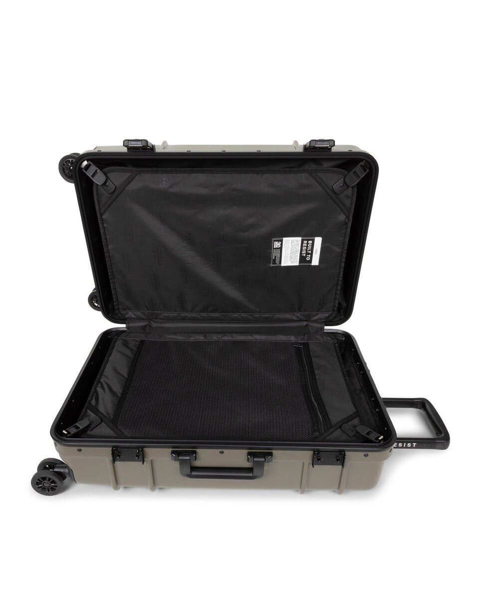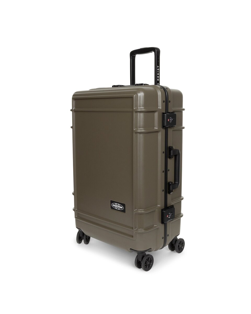 Take flight with our medium hardshell suitcase. Built to Resist whatever your journey throws your way, this luggage combines durable polycarbonate with a lightweight aluminium frame. Protective bumpers and an integrated lock secure your belongings in this water-resistant case. Add a touch of effortless luxury to your travels with Japanese wheels and premium Eastpak branded details.