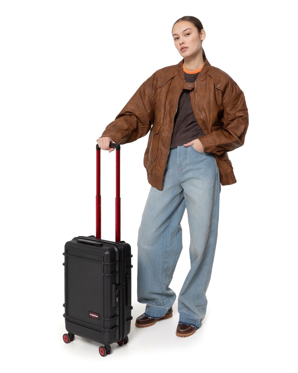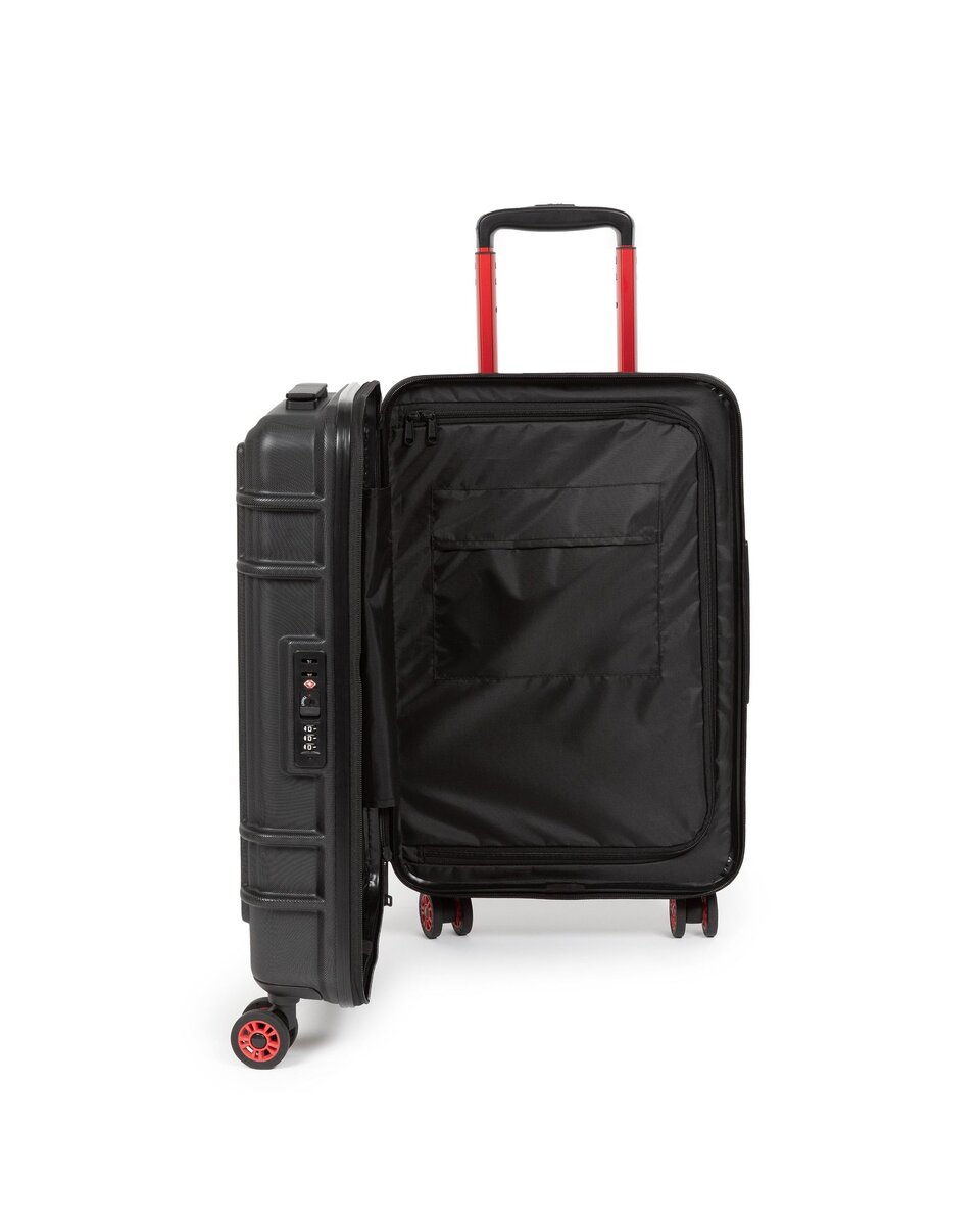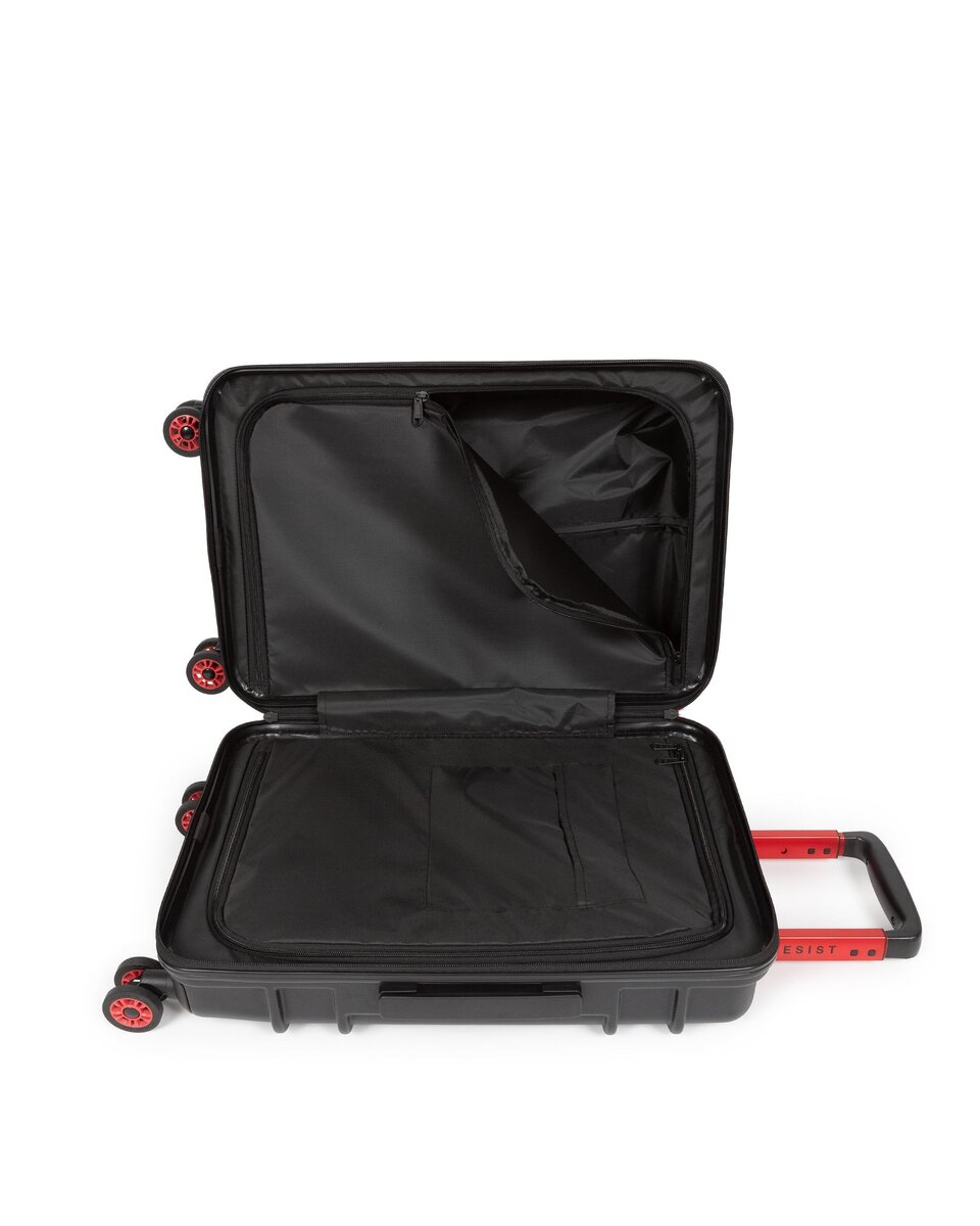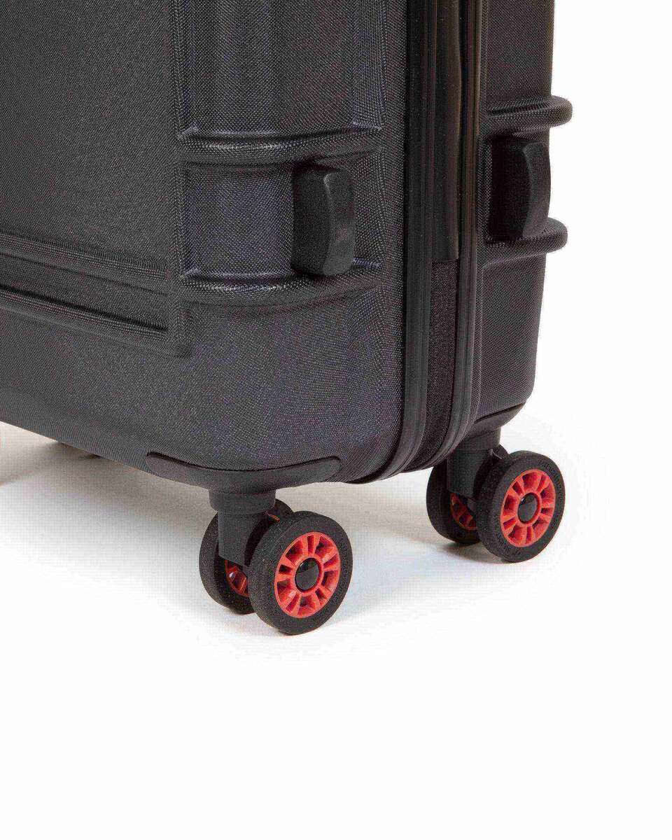 Il nostro trolley rigido da cabina e di dimensioni conformi per i viaggi brevi e le notti fuori casa è dotato di due scomparti con zip. Questo bagaglio a mano resistente all’acqua si distingue per i dettagli rossi, il logo “Built To Resist” sul manico e le ruote giapponesi girevoli a 360 gradi.