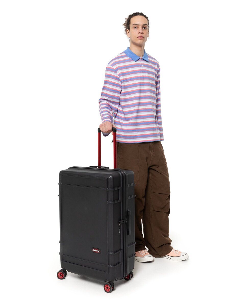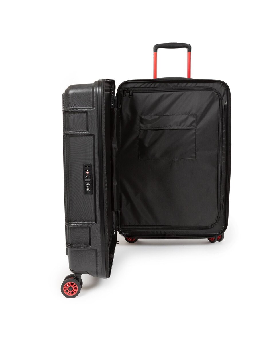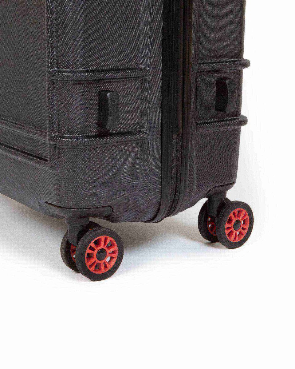 Il nostro trolley rigido grande per viaggi a lungo raggio e soggiorni prolungati è dotato di due scomparti con zip. Questa valigia leggera si distingue per i dettagli rossi, il logo “Built To Resist” sul manico e le ruote giapponesi girevoli a 360 gradi.