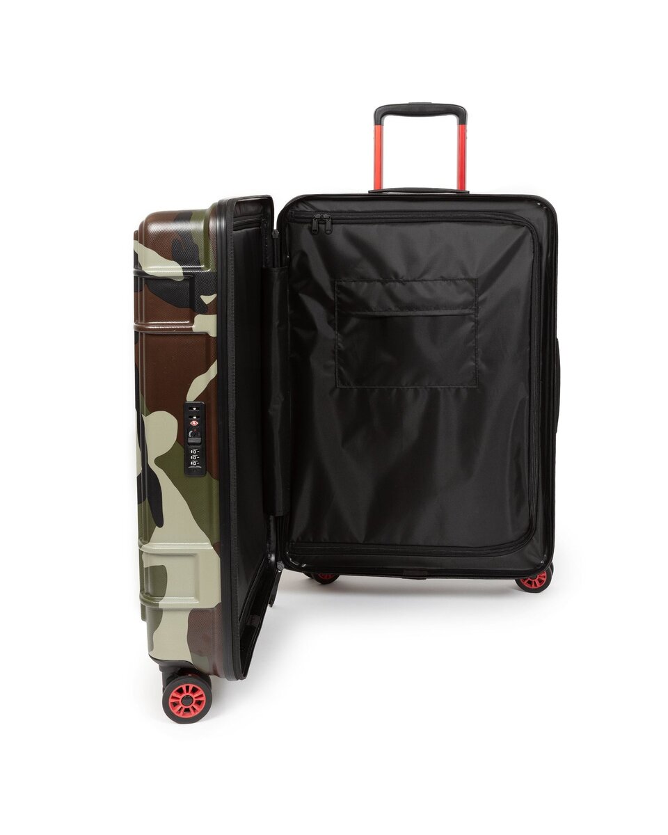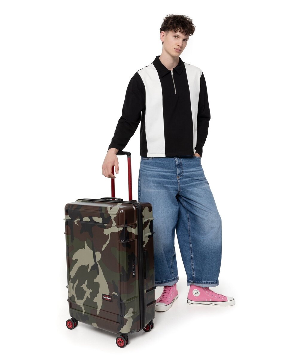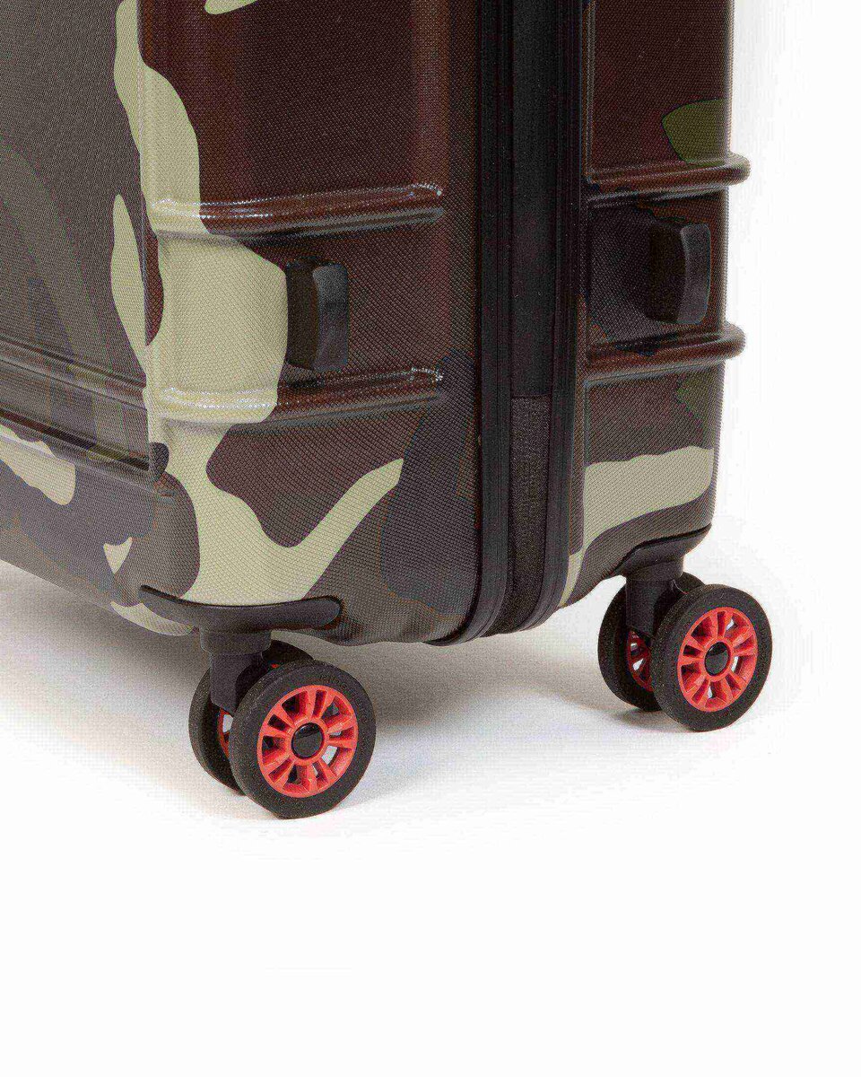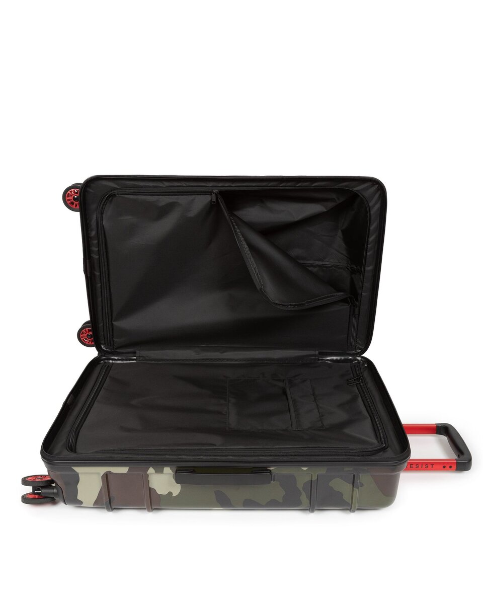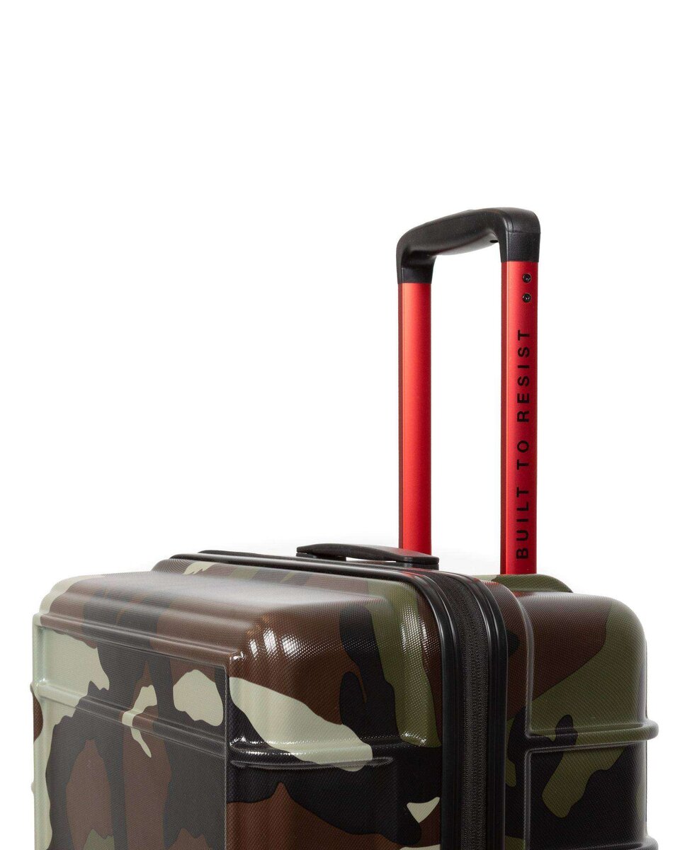 Il nostro trolley rigido grande per viaggi a lungo raggio e soggiorni prolungati è dotato di due scomparti con zip. Questa valigia leggera si distingue per i dettagli rossi, il logo “Built To Resist” sul manico e le ruote giapponesi girevoli a 360 gradi.