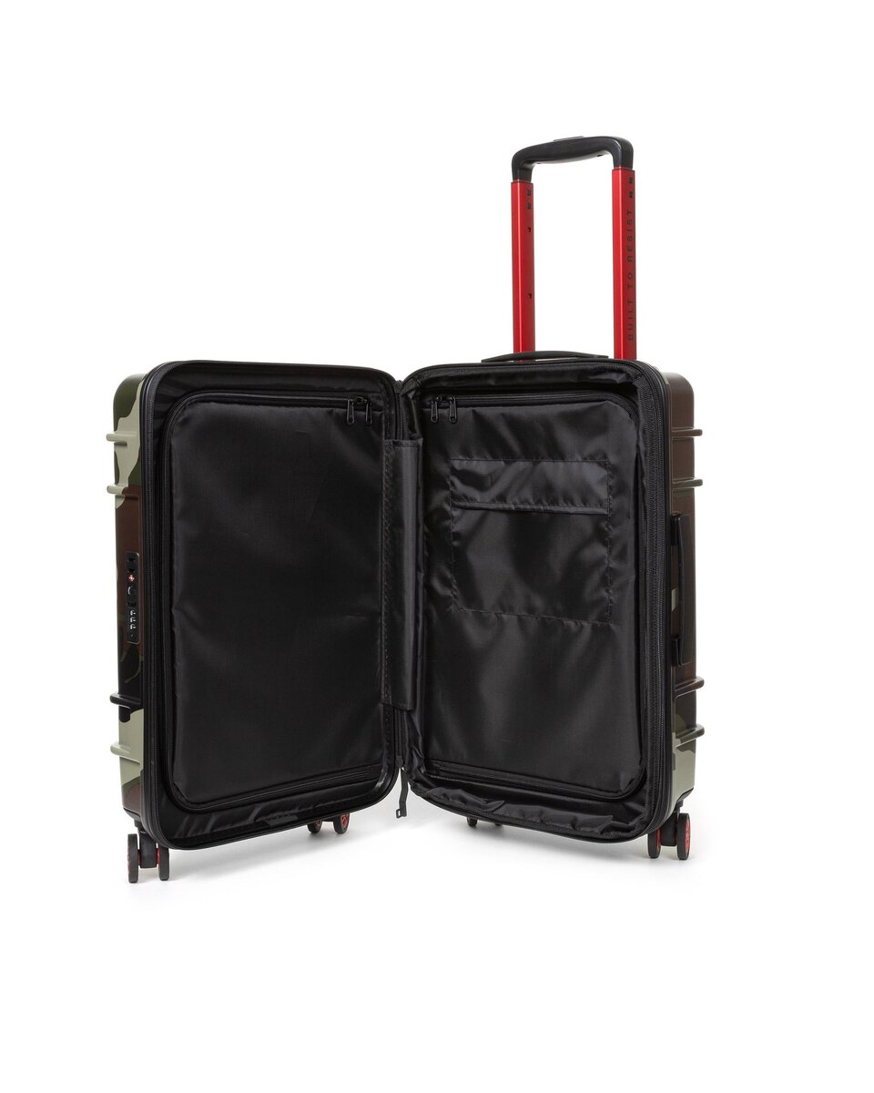 Il nostro trolley rigido da cabina per i viaggi brevi e i weekend fuori casa è dotato di due scomparti con zip. Questa valigia a mano leggera si distingue per i dettagli rossi, il logo “Built To Resist” sul manico e le ruote giapponesi girevoli a 360 gradi.