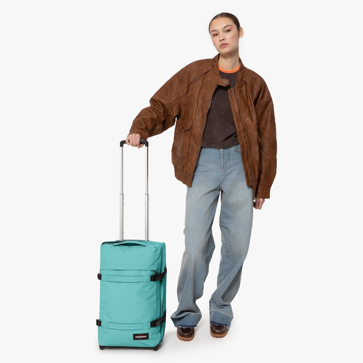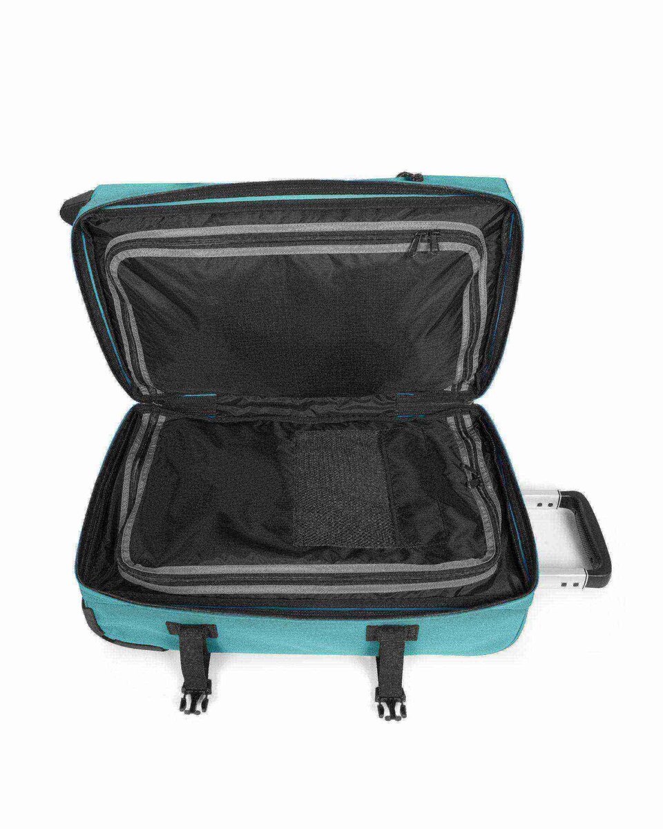 - Telescopic handle, top handle and dual front carry handles