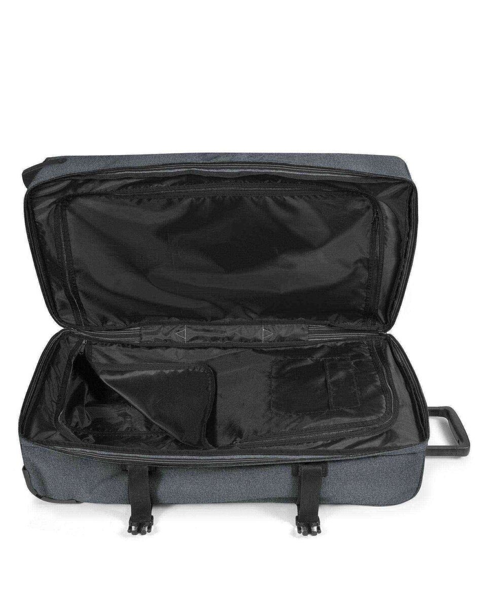 La nostra valigia per i viaggi lunghi nella tonalità Black Denim: riempila, spostala con facilità e, una volta a destinazione, appiattiscila e riponila via