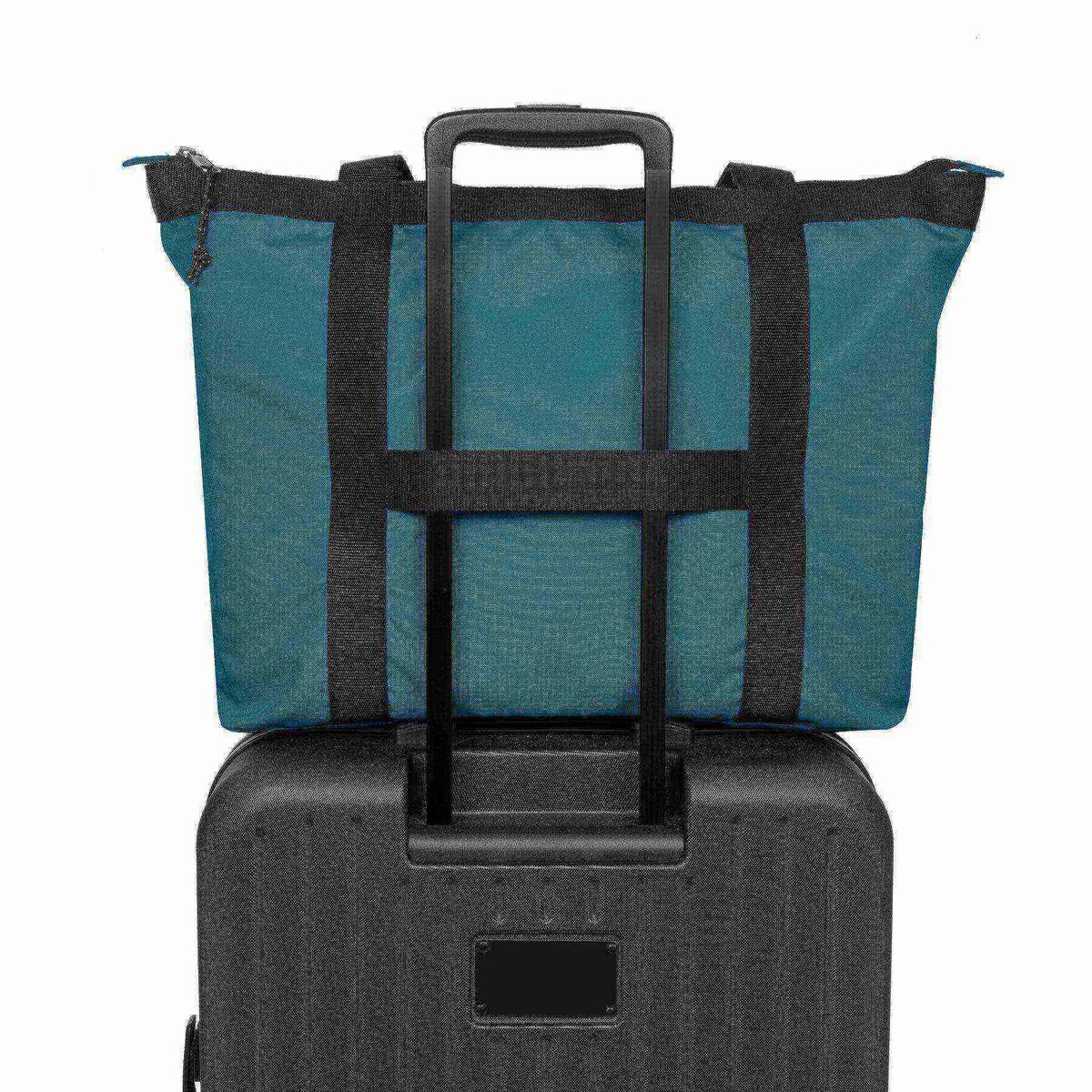 The Travel Tote shoulder bag features a spacious main compartment with a laptop sleeve that fits devices up to 16 inches, perfect for daily commutes or weekend getaways.
